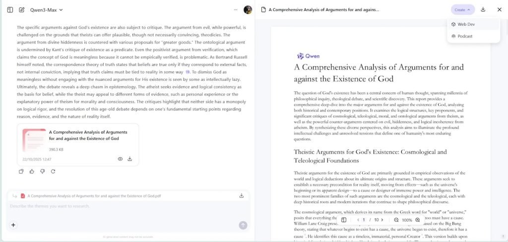 شفقنا رسانه- کاربران چتبات Qwen اکنون میتوانند فایلها و اسنادی را که این هوش مصنوعی تولید میکند، به وبسایت یا پادکست تبدیل کنند.