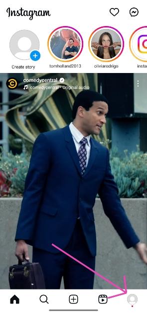 مرحله ۱: برنامه Instagram را باز کرده و روی تصویر پروفایل خود در گوشه پایین سمت راست بزنید.