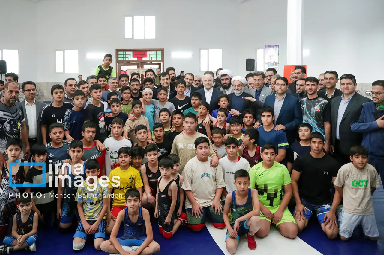 تصویری از محمدباقر قالیباف در جمع نوجوانان کشتی‌گیر در مشهد منتشر شده است.