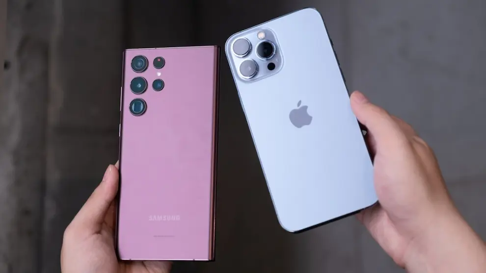 سامسونگ و اپل در بازار گوشیهای هوشمند از سرسختترین رقبای یکدیگر محسوب میشوند و حتی در کمپینهای تبلیغاتی بارها به شکل مستقیم یا غیرمستقیم یکدیگر را به چالش کشیدهاند. با این حال، این رقابت مانع از همکاری تجاری نشده است. سامسونگ کره جنوبی همچنان یکی از تأمینکنندگان اصلی قطعات آیفون، از جمله نمایشگرها و حافظهها به شمار میرود.