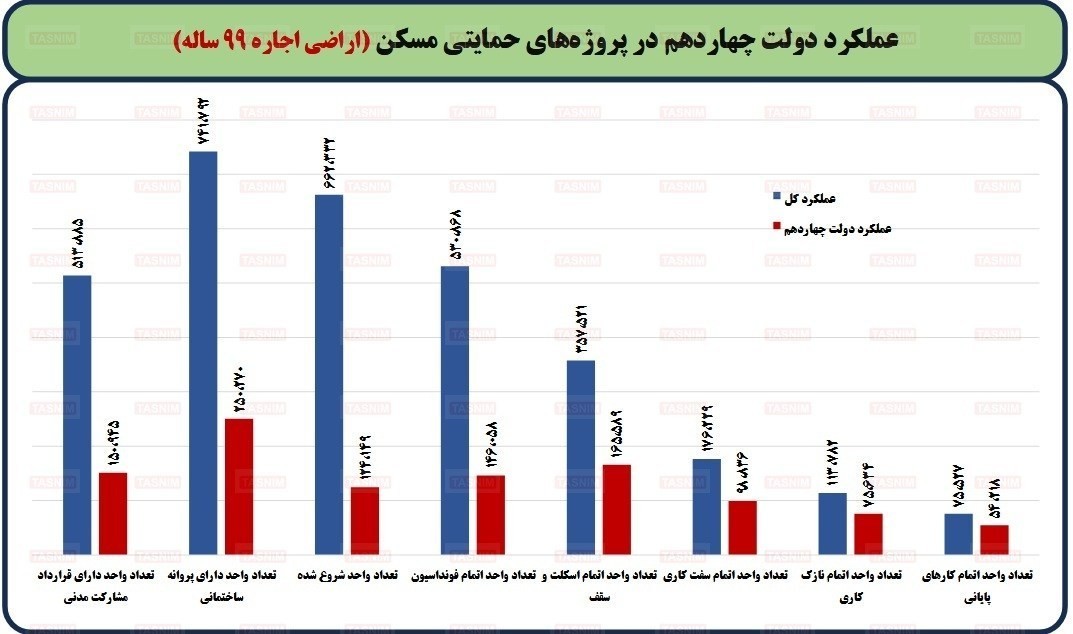 تا 26 آبانماه فونداسیون 530 هزار و 868 واحد به اتمام رسیده که از این تعداد سهم دولت چهاردهم 146 هزار و 58 واحد معادل 27.51 درصد بوده است.